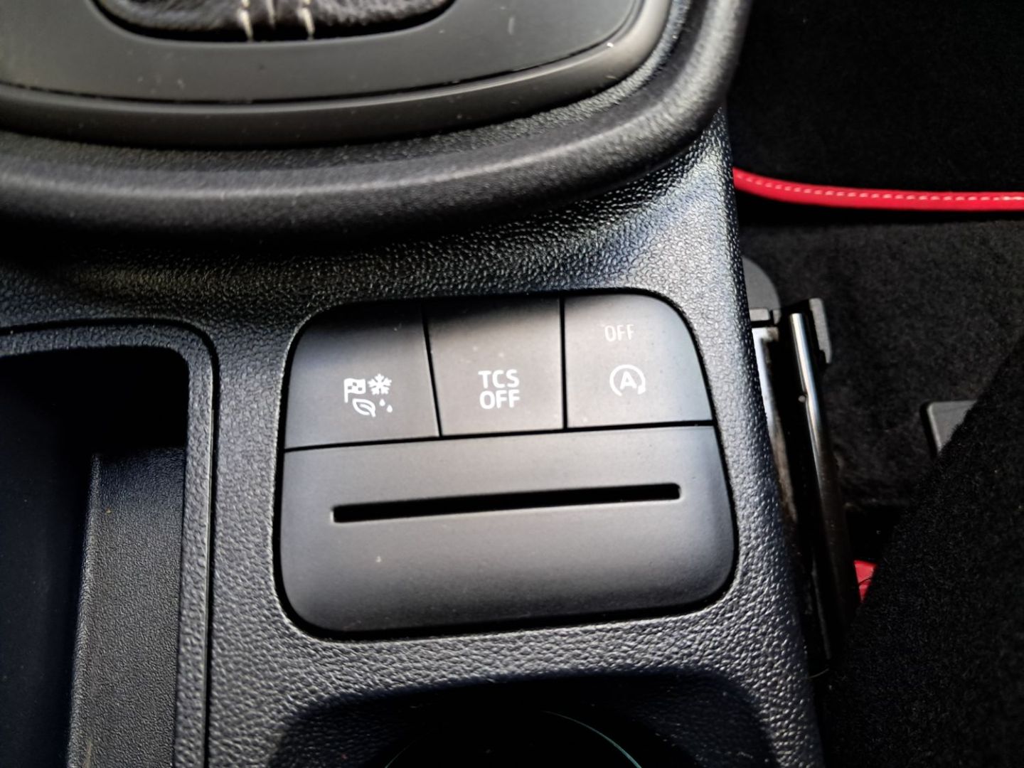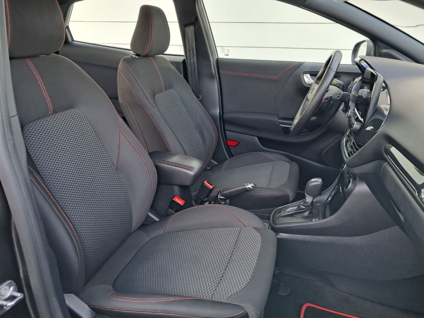 | Sellerie tissu noir Court avec surpiqûres rouges | |