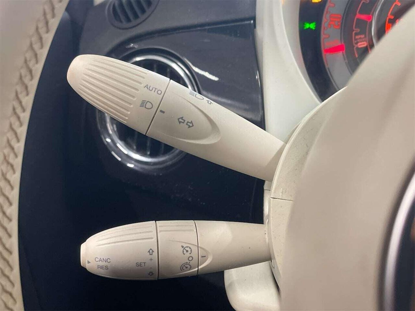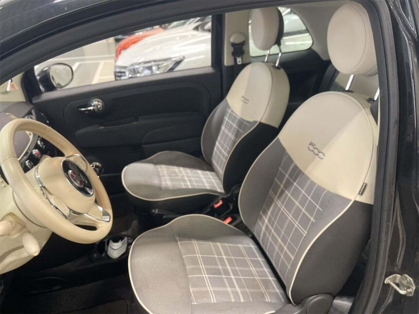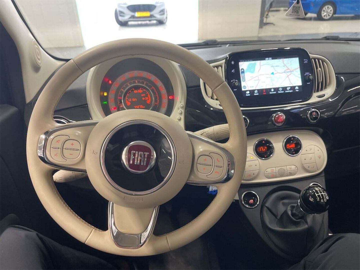 | Détails chromés : baguettes de vitres latérales, poignées de porte intérieures, lame AV sous logo Fiat et le levier de vitesses | |