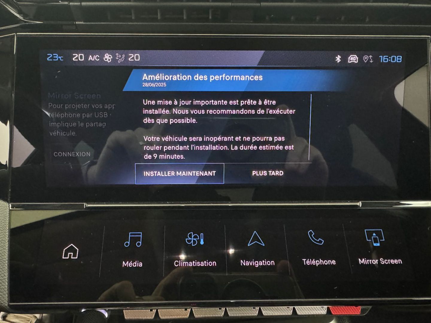 | Fonction Mirror Screen (Apple CarPlay/Android Auto) sans fil | |