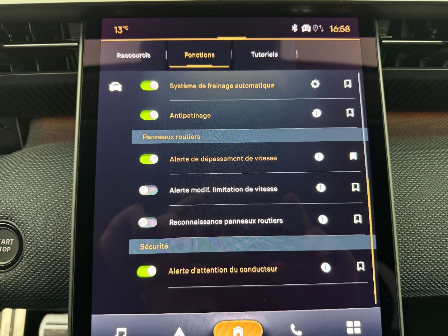 | Ecran central vertical 13" tactile | |