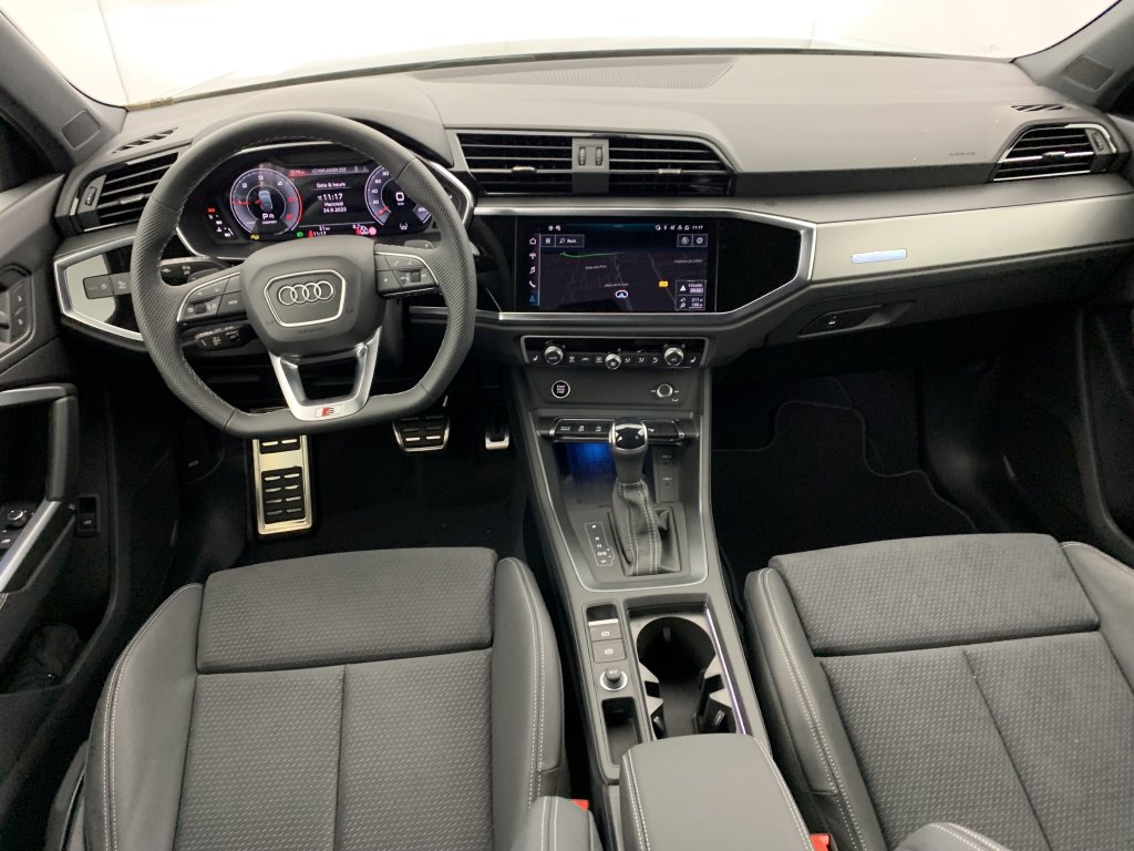 Pack esthetique noir plus : pare-chocs AV/ar noirs entourage des vitres laterales avec des baguettes enjoliveuses noir calandre singleframe noire lames interieurs de la calandre singleframe nid d'abeille noires au lieu de grises anneaux audi et mono